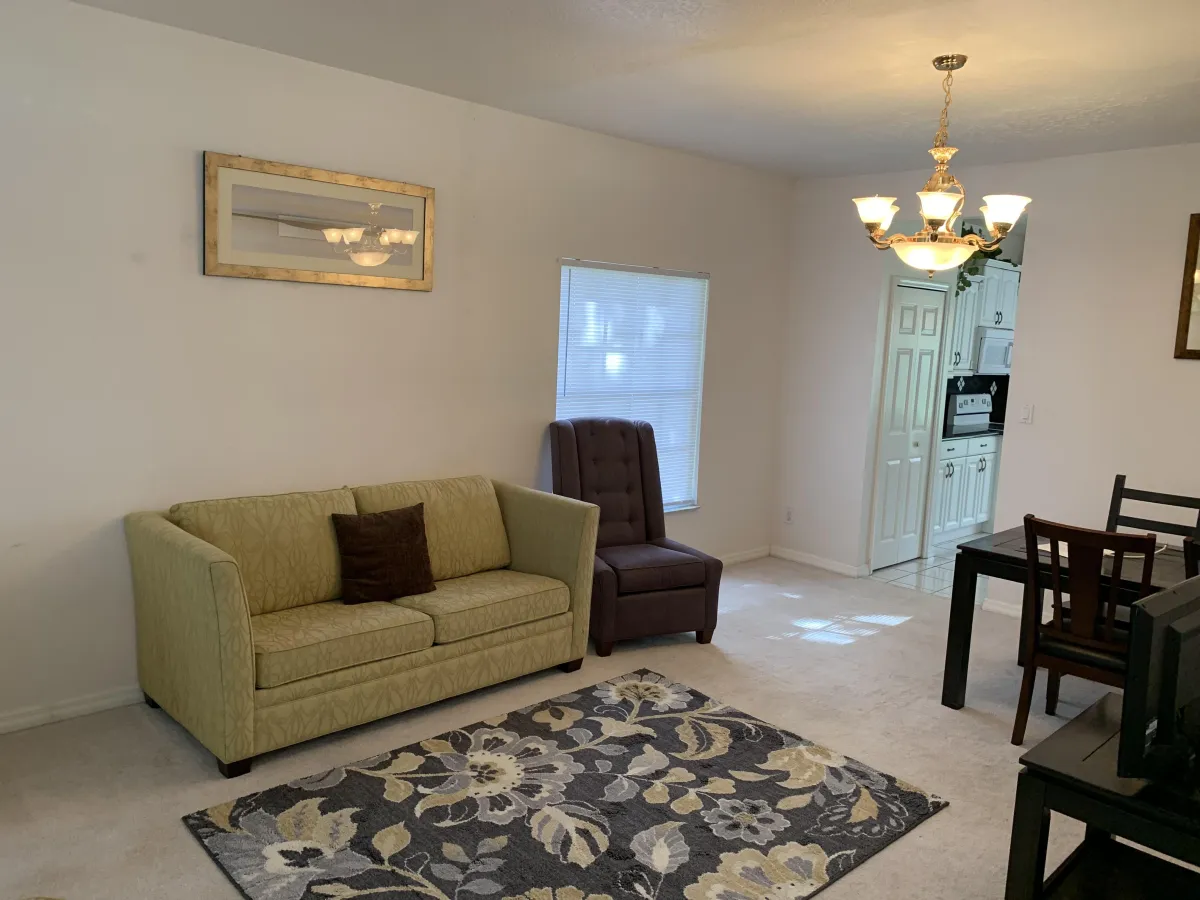 Our shared living room is designed to feel just like home- a cozy space to relax, connect, and build community.